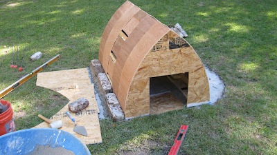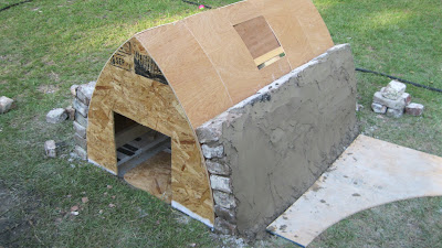 I got a little busy to keep the updates current but here is where I’m at. Last week was a good one for progress! The form worked out great for the brick work and I’m pretty happy with how the vault turned out. These things are very irregular and setting them was more like coursed, squared off stone than bricks. Having never done brickwork like this I’ll say it was a pretty cool to build with them. But man am I slow at it! The vault took me 2 days..they weren’t 8 hr days but still. If this was a dry stone vault I could have done it in 6 hours or so…big time difference. But I don’t have the stone and I wanted to use these so…..