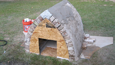 I would of stacked bricks up inside, put clay over the top to shape, but maybe wood forms is faster and cheaper for you.