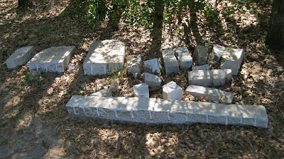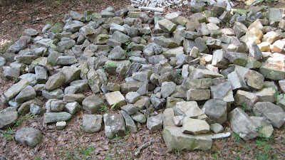 Split and uncut natural fieldstone which will be used in the outer arches, piers and walls.