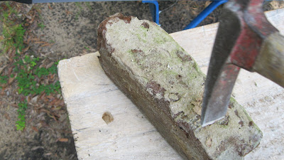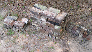 Today ( the 25th ) I was getting the brick cleaned up and sorted. These are some beautiful reclaimed bricks from a building in Charleston which were used in a fireplace close by. They had to be removed when I remodeled the fireplace and I traded labor for the bricks. You simply can’t replicate the character of antique brick like this. I think they will look great and blend with the stone nicely because they are more like stone in shape and texture than brick.