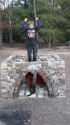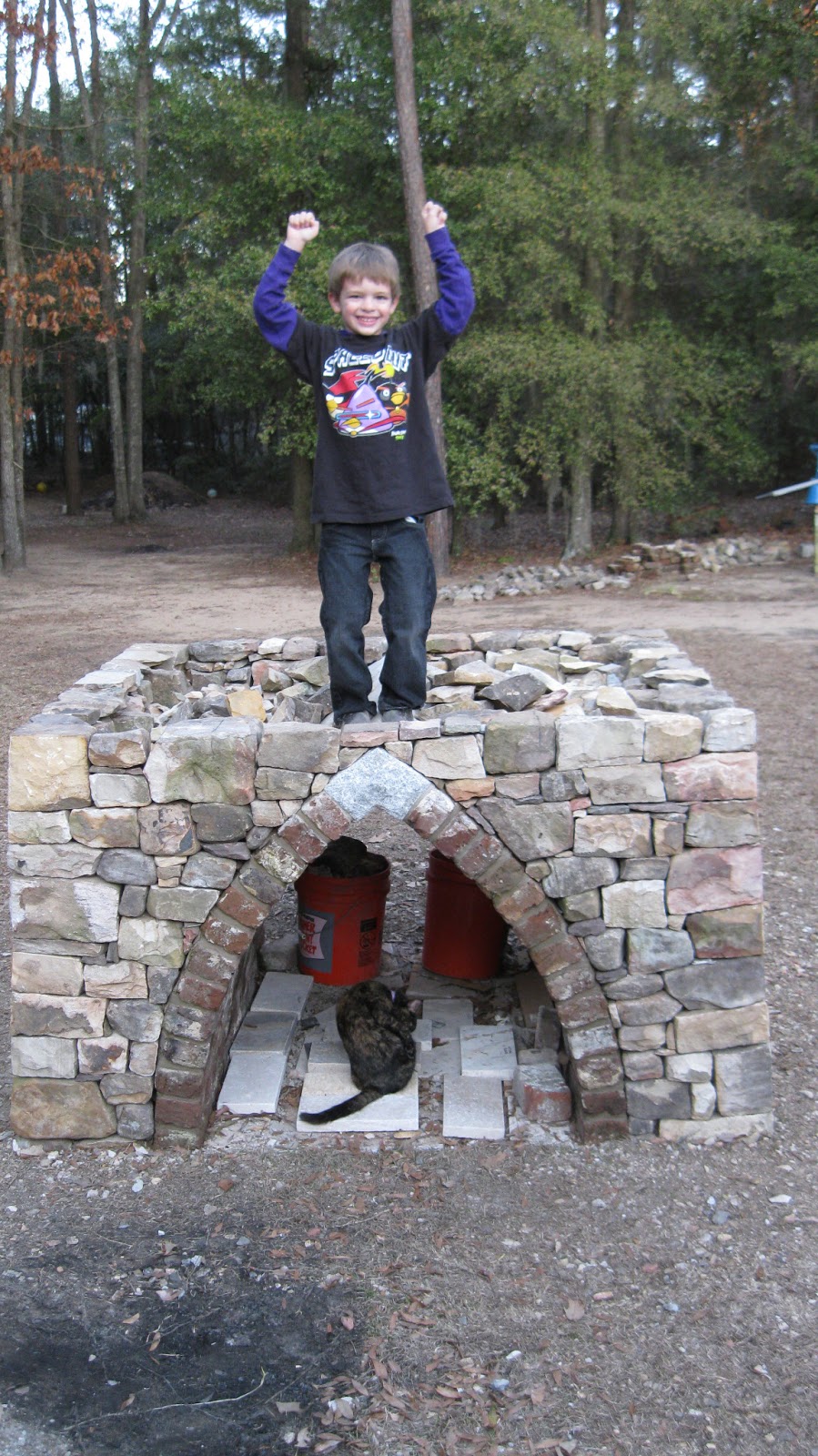Mason, my #1 helper, is happy that’s done!!! One step closer to wood fired pizza!! Don’t worry parents, I tested the arch right after I set the keystones, before the mortar was even fully cured. And if his 45lb frame caved in the arch, then I need to seek another profession…and run from his mom!!!